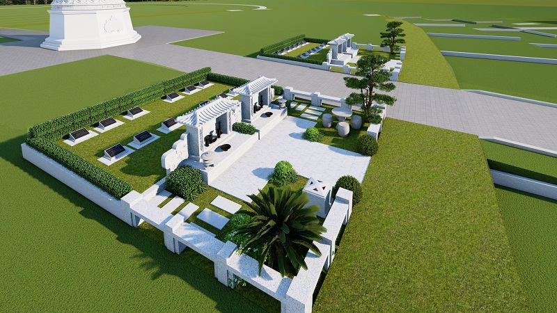 - (3) Khu an nghỉ: Nằm ở phía sau khu thờ tự, vị trí này giúp mang đến sự yên tĩnh, kín đáo cho từng phần mộ. Ngoài ra, tuỳ theo hướng phong thuỷ của từng cá nhân, mỗi phần mộ sẽ linh hoạt lựa chọn theo hướng mà không ảnh hưởng đến cảnh quan chung của toàn khuôn viên.