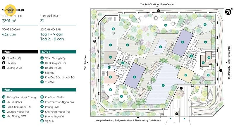 - Quy mô dự án: gồm 2 block cao 31 tầng, với 1 tầng hầm, 4 tầng podium và 27 tầng cao.