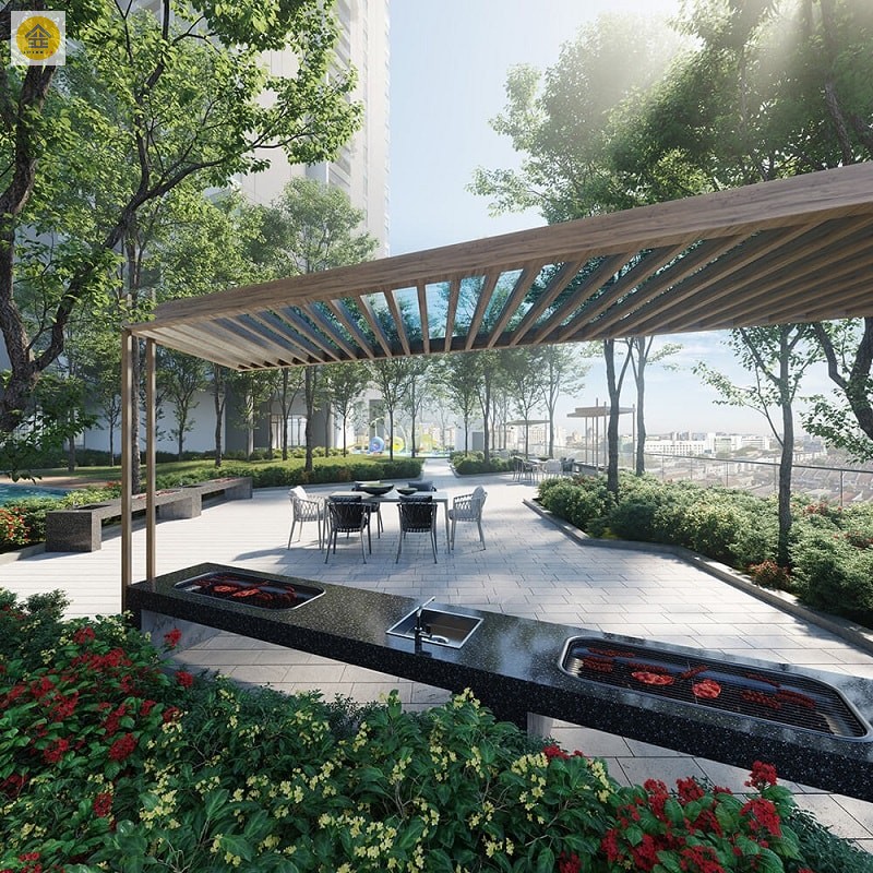 - Tầng 4 tiện ích: Bể bơi, Gym, Yoga, thư viện, BBQ Gardens, khu vui chơi, khu thể thao ngoài trời,…