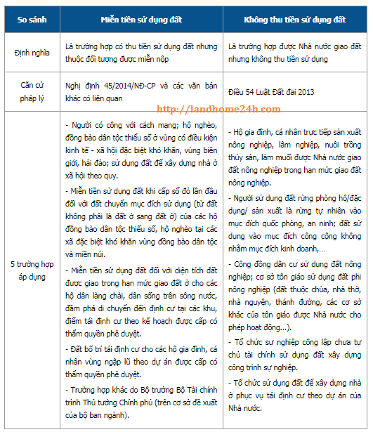 - Phân biệt miễn tiền sử dụng với không thu tiền sử dụng đất