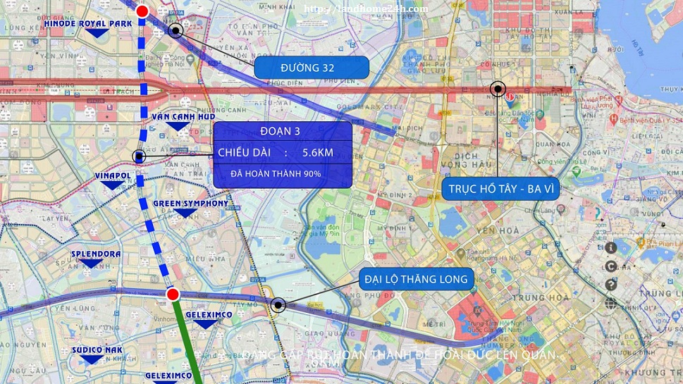 P/S : Tuyến 5.6km nối Đại Lộ Thăng Long và Đường 32 luôn được quan tâm nhiều nhất. Vì trực tiếp đi qua các dự án bất động sản lớn đang triển khai tại đây: Splendora Bắc An Khánh, An Lạc Green Symphony, Vườn Cam Vinapol, Vân Canh Hud, Hinode Royal Park…