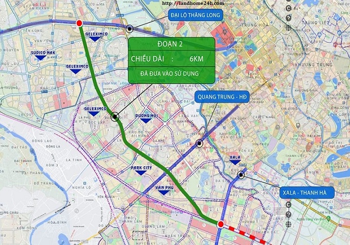 - Chiều dài tuyến: 6km, đi qua các khu đô thị lớn của phía Tây Hà Nội như: Xa La, Văn Phú, Dương Nội, Geleximco….